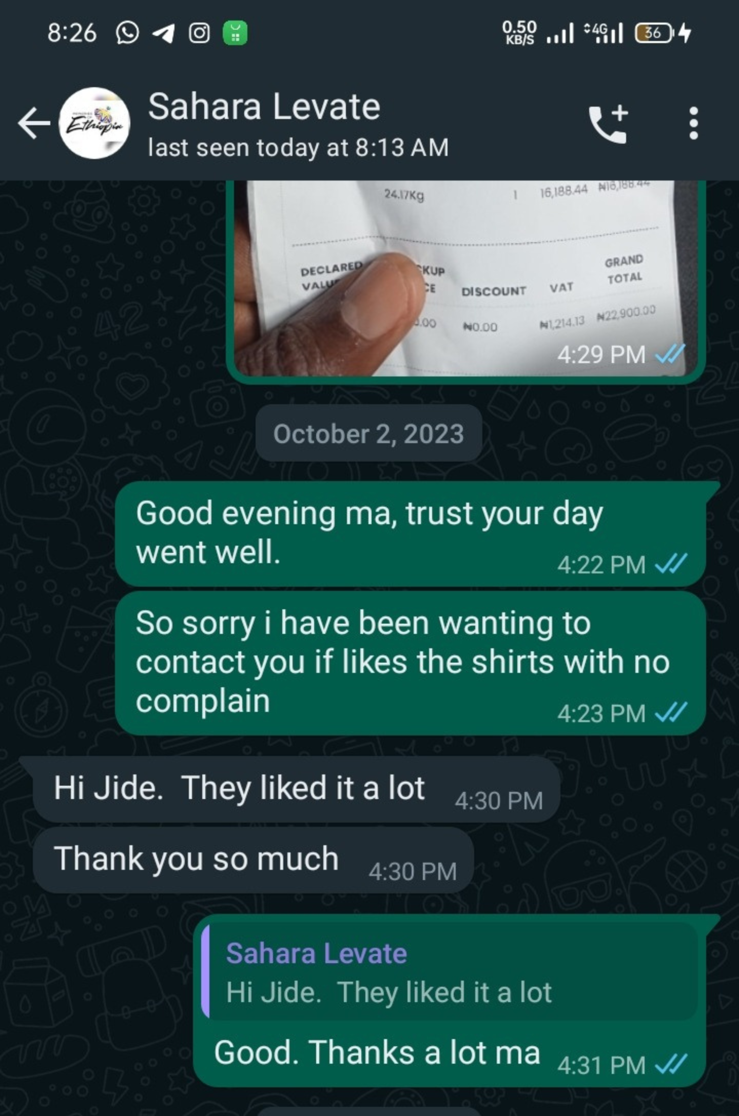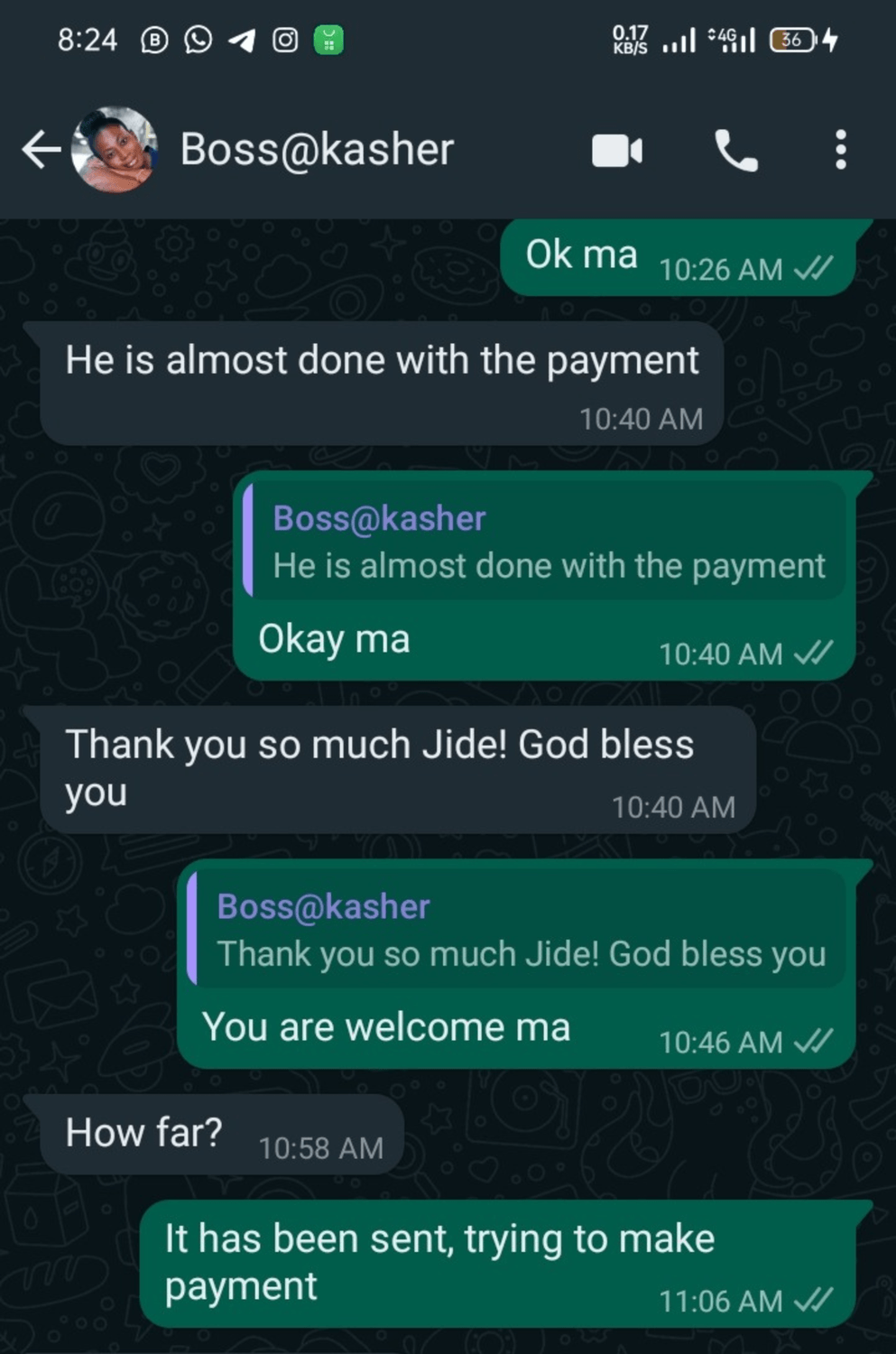 Kasher thanking us after an amazing work done: